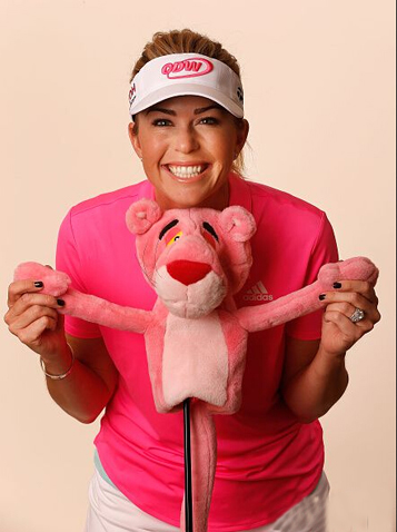 跟伍兹在星期天的“胜利红色”类似,宝拉-克里默有自己的决赛轮着装密码。她的外号“粉红豹”充分体现了她对粉红色的狂热。除了穿着粉红色的衣服外,她还用粉红色的球、握把和丝带。