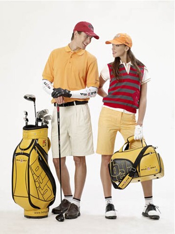 高尔夫的服装是有的充满活力时尚光鲜,有的则低调内敛,不同的服饰应该有不同的搭配。同款型的服装搭配在一起才能凸显人的气质和品位。