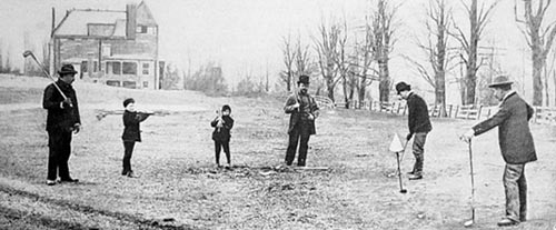 上图是由S.Hedding Fitch所拍摄的1888年“苹果帮”在纽约圣安德鲁斯俱乐部打球的照片