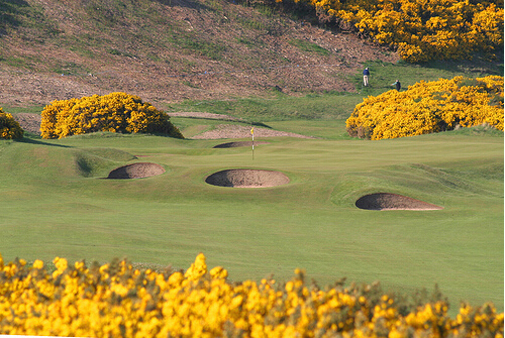 如果你渴望沿着著名的足迹而行走,那么这里就是高尔夫运动的原点。即便你在第一个洞的发球台上双脚颤抖的话,你也会得到原谅;最终紧张的心情会 加剧一些,因为你会走到一片有着微微起伏跌宕,稍平的,容易走的小路上,还有几个世纪以来由那些高球名人堂成员所击球产生的草皮断片。