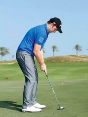 接下来要发生什么则完全取决于果岭上的线路以及球速。太多业余球员过于关注球洞,他们知道这些拐折,但当他们做好推击预备动作之后,他们瞄准的不是开始发生拐折的那点,而是洞杯。
