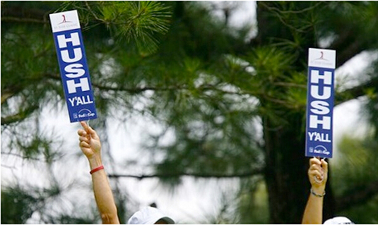 如果你光临过巡回赛事,一定对巡场员记忆犹新。每当在选手发球前,巡场员就会举手示意安静,这是在场的每一个人都停顿了下来,并保持安静。每个人都能遵守规矩,除了那些无视规则仍我行我素的白痴之外。
