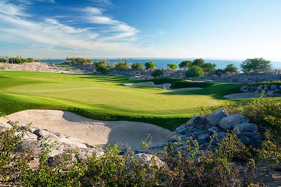自从佐罗仗剑行走江湖之后,还没有哪位黑衣人可以在北美西南部留下如此优雅的足迹。周游世界的加里·普莱耶已经在五大洲35个国家交出了很棒的设计作品,但直到2010年11月,他才凭借新亮相的歌诗达巴哈球场(Costa Baja)为自己的设计履历补上了拉丁美洲这一缺口。位于玻利维亚西部的拉巴斯城、墨西哥的下加利福尼亚半岛(Baja California Peninsula)上,歌诗达巴哈是拥有酒店、地产等设施的大型综合度假村,其中酒店有115间客房、250个泊位的码头、海滩俱乐部和Spa。普莱耶设计的全长7187码的球场是光芒闪耀的中心。这位九次大满贯冠冠军得主将设计融入崎岖起伏的荒地和满是仙人掌的山丘之中。球场上覆盖着低矮的蔓生草,顺着地势起伏变化的形状不规则的沙坑是一大特色。最为惊艳的是后9洞席卷的科尔特斯壮观海景,尤其在612码、Par-5的14号洞,顺着山坡下斜,左侧向海滩延伸,数个排列整齐的沙坑正恭迎大驾。普莱耶自己也为这浓郁的拉丁风情感慨:“我们在这儿的创造不可思议,绿色球道和沙漠景观交融,甚至还有美丽的科尔特斯蔚蓝海景。”设计师的溢美之词?绝不,你眼前的神奇景象正是这位黑衣人剑光跳动间带来的反差巨大的斑斓之色。