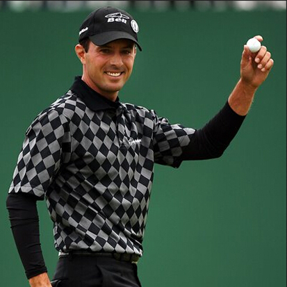 Mike Weir选择黑色的背心搭配他的双色高尔夫衬衫