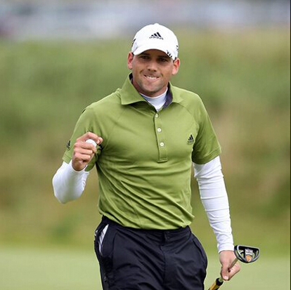 Sergio Garcia的最后一轮,选择了用亮绿色的Adidas polo衫搭配白色的圆领衫