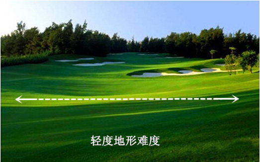 地形是地势对打球影响的评估,当落球区的斜坡与小山丘影响到您下一杆击球时的站姿、站位或球位,以及当攻果岭击球是在上坡或下坡时,地形将对您打球起到影响。