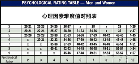 心理因素是评估其他障碍因素对一个球手得分能力的积累影响,接近目标区域的许多惩罚性障碍的位置会对球手的心理造成不安,从而影响了他们的得分。中高协差点委员会在对每个球场进行难度值评定时,会根据每一个球洞的全部障碍难度值通过计算,最终得出每一洞的心理因素难度值。