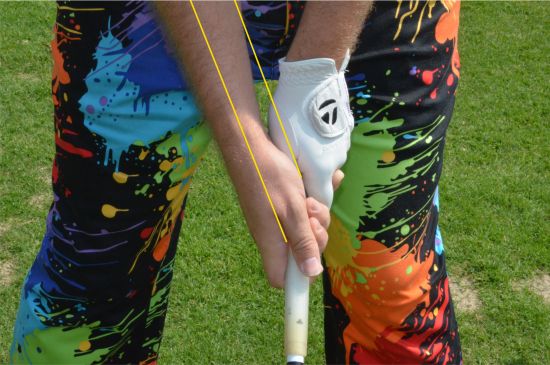 想要打出小左曲,我们需要让杆面在击球的瞬间释放。用一个衣架来当辅助工具,可以帮你更容易地理解关于杆面释放的这个问题。如图,在握杆的时候让衣架放在手和握把之间。