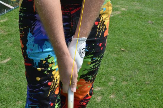 首先让我们从握杆和站姿说起。先检查一下你的握杆姿势,确保你左右手上大拇指和食指间形成的V字都是对着你的右肩膀。