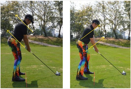 在解决这个问题之前,你需要知道在一号木打法中,右曲球是如何产生的。原因是在击球时杆面太开,导致球右旋。如果杆头轨迹是由外向内,球将从你目标线的左边出发之后旋转到目标线的右边,这也是大多数球手在用一号木打球时产生的现象。现在棕榈泉国际高尔夫学院教练将逐步演示如何避免打出右曲球。