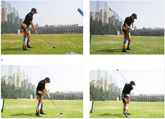 要点:在练习的时候记得摆一个球在左前方,因为大部分球手在打小左曲时都有由外向内挥杆的倾向,这个步骤可以保证你的挥杆轨迹是正确的。在用衣架当辅助工具练习时,只需要做半挥的动作,这样才不会让衣架打到自己。找到感觉后可以不使用衣架,慢慢地把挥杆动作从半挥切换到全挥。用这样的正确方法反复练习,相信你很快就能用一号木打出小左曲球了。