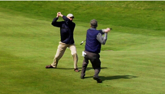 尽管果岭还在220码之外,过于乐观先生也会让他的同组球友(比他距离果岭更近一些)先击球,理由是他怕直攻果岭打到前一组的球员。随后,你会看到过于乐观先生在经过无数次试挥和准备之后,将球打到距离80码的右边沙坑中。