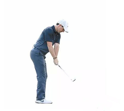 直到杆身与地面平行时,小麦才开始立腕。有些业余球手喜欢起杆即立腕,但这往往会导致挥杆宽度不够,重心未能向后侧转移。