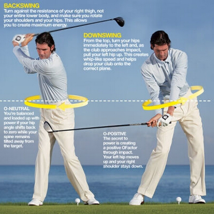 左手和球杆视为一体。发力时三段发力区域先曲后伸:上杆时左手大小臂-躯干和胯部-大腿和小腿先曲,力臂变大;下杆时三段关节再伸展开来,全身即产生力量。同时,发力区在伸展的过程中伴有旋转的动作。
