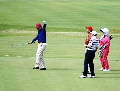 报道称,访美后于3日回国的安倍,同日移步到了山梨县鸣泽村的别墅。实际上,安倍4号才开始大型连休,一直保持着放松状态,在决定把球打进洞时做出了一个大大的胜利手势,看起来十分享受这项运动。