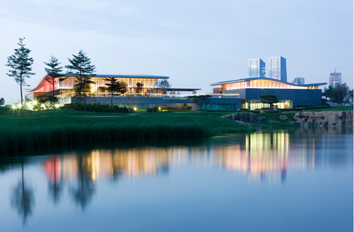 这是伊朗建筑师Mehrdad Yazdani设计并建立的韩国第一个Jack Nicklaus高尔夫俱乐部,集娱乐时尚与高尔夫运动于一体,并于2010年对公众开放。会所顶部由曲面锌板构成,整座建筑采用中性色石材为基底材质,当地产的菠萝格为壁柱材料,可以最大限度地吸收光热。其内部由大理石地板、喷丸式不锈钢柱与石灰墙面构成。整个效果在Nicklaus看来便是“世间罕有,独一无二”。