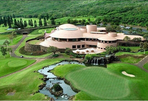 有着标志性舷窗和沙漠玫瑰色外观的King Kamehameha高尔夫俱乐部,是夏威夷岛上仅有的两座由Frank Lloyd Wright设计的建筑之一,迄今为止已走过二十个年头。起初是计划将其修建为作家亚瑟·米勒及其夫人玛丽莲·梦露在康乃狄克州的住所,当时只有 14000平方英尺,后来被高尔夫球场开发商收购并将其扩展到74778平方英尺。发源于西毛伊山丘陵地带的King Kamehameha高尔夫俱乐部之后便对大众开放,它的特色建筑材料是非洲红木;另有彩色玻璃天窗,在阳光的映照下犹如千万只蝴蝶在飞舞;以及令人叫绝的夏威夷艺术收藏,其中包括Herb Kane关于King Kamehameha的史诗性版画及其主要作品。