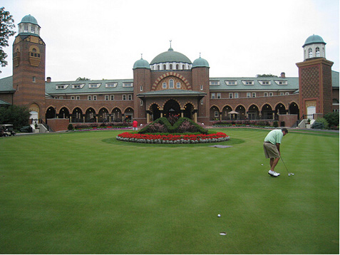芝加哥建筑师Richard Gustav Schmid 素以擅长前大萧条时代建筑而著称,他博采众长,建筑风格融拜占庭帝国、东方国家、路易十四时代以及摩洛哥王国的设计精华于一体。Medinah高尔夫乡村俱乐部就是他最出色的的设计之一,这座红砖绿顶的俱乐部于1926年竣工,它的第三高尔夫球场闻名于世,主办过多次美国职业高尔夫球赛,其中包括2012 年的“莱德杯”。据记载,该座俱乐部是仿照一个土耳其清真寺设计修建的,由顶部的仿制尖塔和剧院式圆顶大厅构成。(大厅内部则是由德国艺术家Gustav A. Brand创作的镶嵌画为主要特色。)