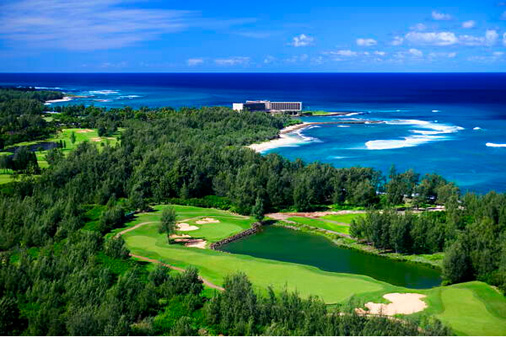 位于夏威夷的瓦胡岛,球场就顺着瓦胡岛北海岸(世界上最著名的冲浪胜地)延伸,穿越了一些天然的沼泽地。不过你在那里打球最能让你激动的一刻肯定是在你打第17号洞的时候,这个四杆洞的果岭就紧靠着海岸。如果你包里还有冲浪板,那你在那里还可以玩下冲浪。