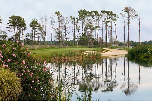 位于佛吉尼亚州的Cape Charles,帕尔默过去球场上的老对手杰克-尼克劳斯在那里也设计了一座球场。湾溪度假村球场有一个特点,就是走道都是用贝壳铺成的,而且那里的湖都非常漂亮。想象一下如果你下午在那里打上一轮,海鸥在你身上飞过,橙红色的夕阳洒在海边,那会是多么美的一幅画卷。