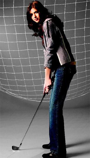 除了高坛上着装出位的球星,一些热爱高尔夫的非高球Super Star们也乐意把社会的时尚带到球场上,挑战传统的着装规范。篮球巨星迈克·乔丹歪戴着帽子与伍兹一道在球场上共话高尔夫,一些女明星们更是把时尚发挥到了极致,夸张大胆的低腰热裤,紧身无袖、色彩多变的低胸上衣以及闪闪发光的装饰品等都成了球场上的“亮点”。这样的挑战也许会使高尔夫的原本含义渐渐变味,但谁也不能否认这是时代变迁的需要。