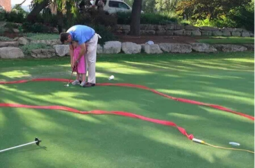 1-3岁,给他们一个推杆,把球放在离洞杯半米以内的位置,帮助他们把球推进洞。