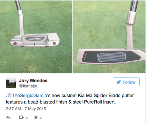 泰勒梅技术代表Jory Mendes在推特上特宣传了这款推杆,之前的PurePoll嵌入物都是由80%的沙林树脂和20%的铝制成,独有加西亚的是由钢制成。