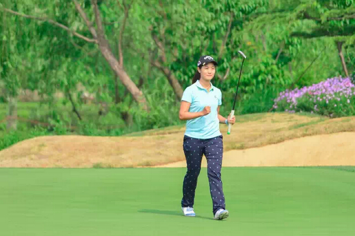 第一轮开场非常漂亮,林希妤在16号洞推入50英尺小鸟推,最多的时候低于标准杆8杆!但在最后一洞时,由于对岸人群的干扰,吞下双柏忌,但这并不影响希妤的心情,依旧充满朝气。