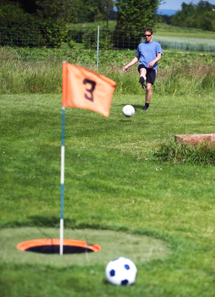 你没看错,那帮人确实在高尔夫球场上踢足球。他们的目标不是尽量多破门,而是让球早点进洞,踢球次数越少越好。这项被冠以“足式高尔夫”(Footgolf)名称的新运动于2009年在荷兰兴起,甚至诞生了和国际足联类似的国际足式高尔夫联合会(Federation for International FootGolf,简称FIFG)。不少足式高尔夫协会更打出令人浮想联翩的口号——我们的球更大。美国足式高尔夫联盟官网精辟地总结道:“它既有高尔夫的卓越、优雅和精准,又不乏足球的激情、活力和乐趣。”如今,国际足式高尔夫联合会已经拥有17个成员国。