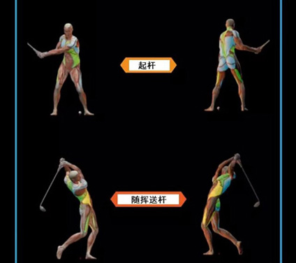下半身(髋部和腿部):在下杆过程中,髋部转动非常重要,同时外展肌(大腿和髋部的外侧肌肉)能够帮助保持平衡。