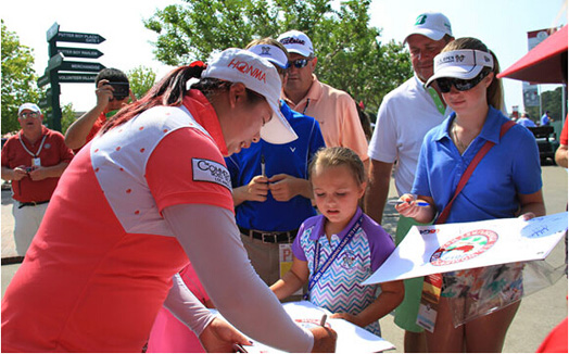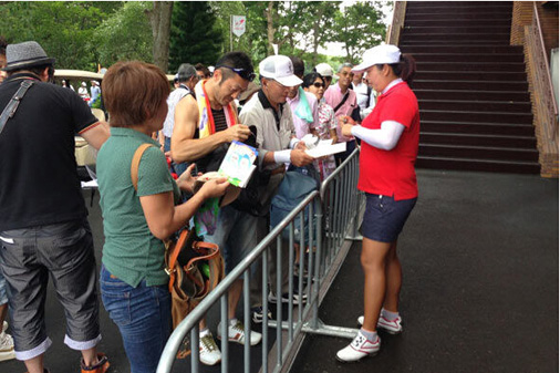 都说女人是温柔的动物,更何况CLPGA还向女子日巡赛学习,对每一位球员进行培训,让她们更加职业,注重仪表妆容,彬彬有礼,并且对球迷非常友善。在女子赛中,经常能看到球员非常耐心地为围上来的球迷签名,并与他们互动。显然,作为球迷来说,更希望看到球员对他们点头微笑,而不是爱搭不理。