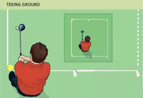 那么,什么是正确的发球区域?如上图所示↑,即发球台标示(tee mark)连线后,两支球杆延伸的长方形范围内。球必须架在该区域内,双脚可以站在该区域外。
