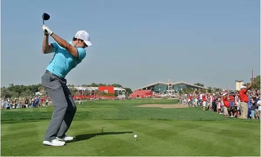 【球技贴士】在风小的情况下,现世界第一麦克罗伊喜欢在一号木开球时,将球架得很高。而高弹道的轻度右曲球已经成为小麦的标志性球路。↓