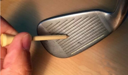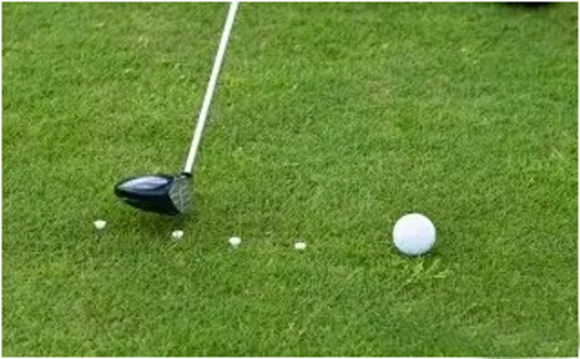 附加功能二:超好用练习小道具。在下图中,Tee被用作了规范挥杆路径指示线;另外,你还可以在练习果岭上插Tee作参照物……只要开动脑筋,球座可以帮你完成很多练习。↓