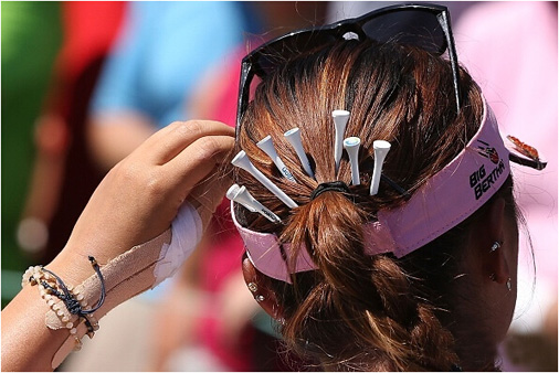 ↓再或者,女性球友们可以向现女子世界第一高宝璟学习学习——球座当发簪,既美观又便于储存。