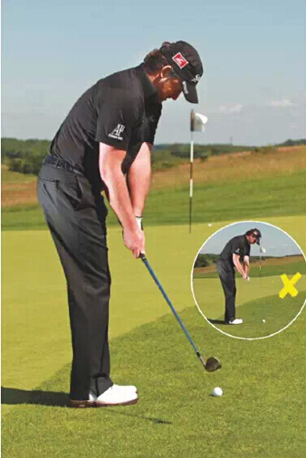 要避免打球时把双手放在球所在的位置的前方。很多业余球员会犯这个错误。在这个情况下,一个高抛球是必要的,因此要保证双手在球的上方。我在击球时会在击球时转动身体寻找比较好的位置,而不是仅仅依靠双手的力量。我们需要达到的目的就是让球飞上果岭并缓慢移动。
