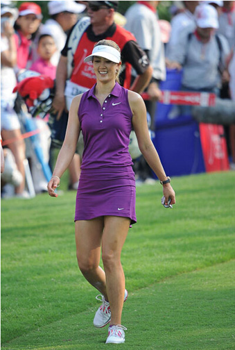 高尔夫着装礼仪是高尔夫礼仪重要的组成部分,女球手的着装不仅要合乎规范,还要秀出自己的风格,自己的美。而身材高挑,长相甜美的美女们,穿什么衣服都掩藏不住美女本色。