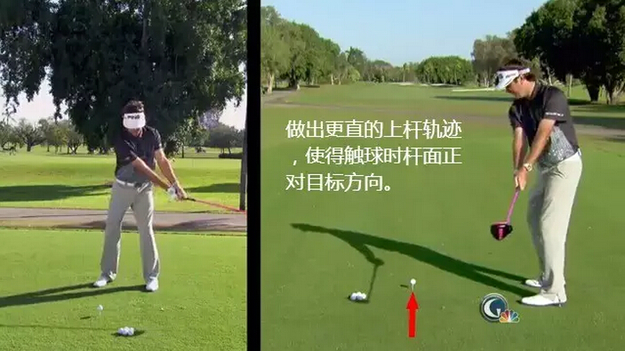 另外在上杆时,沃森建议大家笔直上杆,避免上杆轨迹太陡或太平,这样能使杆头在触球时保持正对目标方向。