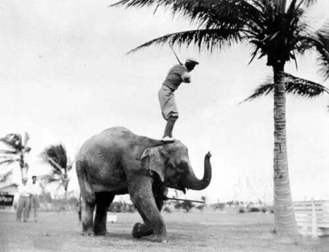 早期的高尔夫球手甚至还站在大象的身上击球,这番风景现在也是少见了吧