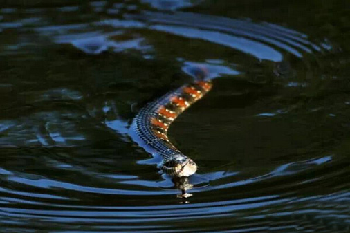 水蛇在球场的湖里穿行