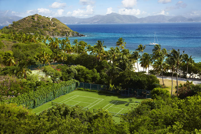 彼得岛水疗度假村的网球场等诸多运动设施都处在山海环抱之中