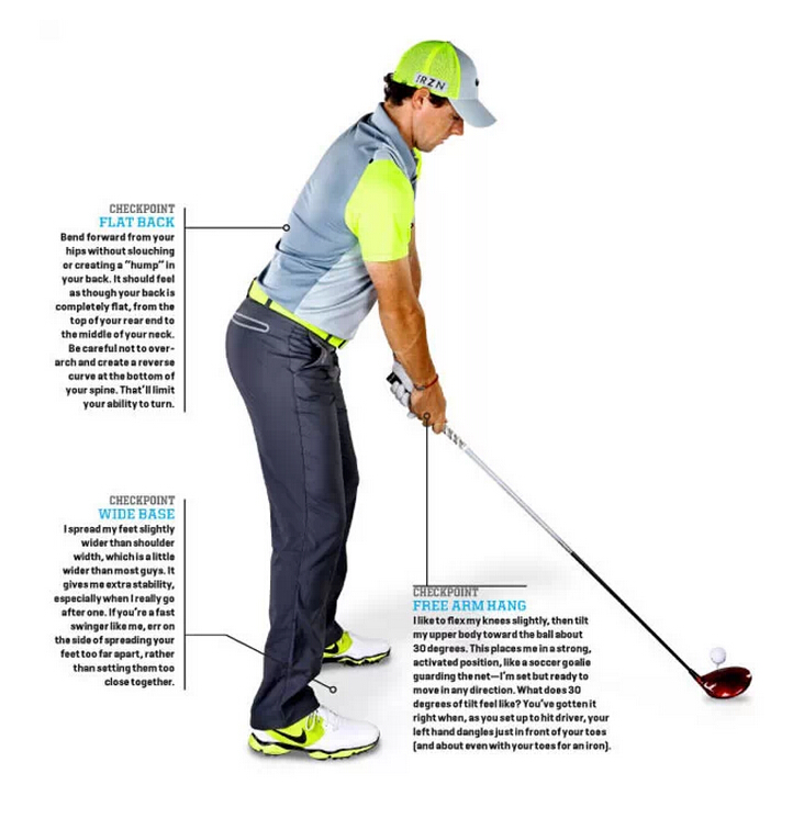 球手需要一个舒适的站位,弯曲膝盖的时候从臀部开始倾斜身体。