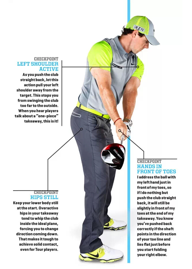 我挥杆轨迹中的前两英寸是非常重要的。如果球杆在正确轨迹中,我在下杆时就无需修正,我也就不担心击球质量。如果上杆失误,我的击球就会错误百出,虽然我有办法去补救。