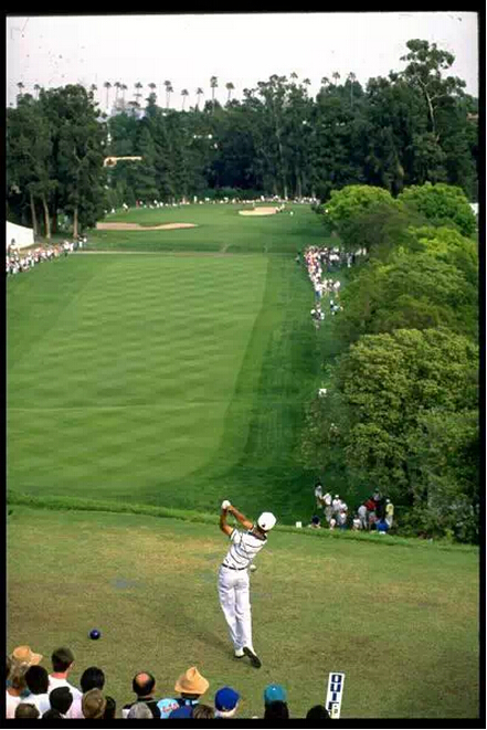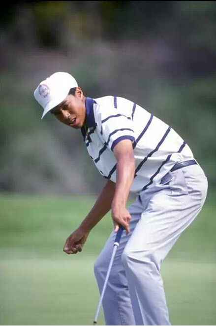 在92年洛杉矶公开赛上收杆情形。首轮比赛失利后,不能晋级参加下轮比赛,直到下一年度的公开赛。