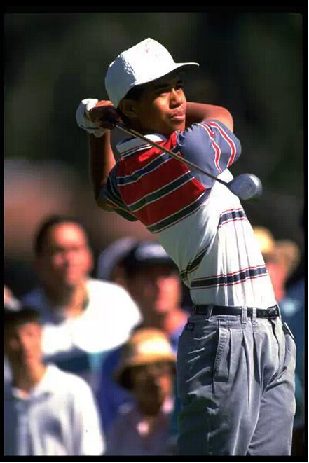 在这些92年及93年洛杉矶公开赛中老虎伍兹的照片中,看到了他稚嫩的一面。难怪有人给他取绰号叫Urkel。 (Urkel是美国 Family Matters的主角, 是黑人,戴很奇怪的大眼镜,穿吊带裤, 很有趣但古怪的人. )