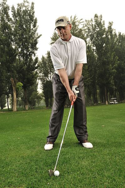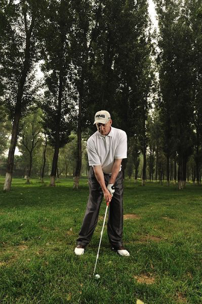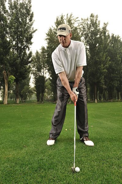 首先要做好必要的准备工作。比如,清理周围杂物,分析球位,决定球的飞行轨迹。 想成功打出一个低弹道球,球位需要靠近身体右侧,双手要稍微偏向球位左侧,创造一个向左倾斜的杆身角度和 一个降低的杆面角度。