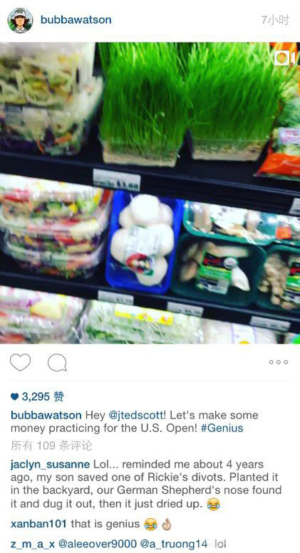 “泰迪,你看,你需要把我打下来的草皮保存起来,”他拿着超市里面的小麦草(wheat grass)和自己的球童泰德-斯科特说。“我们能赚这么多钱呢。看看这个价格,3.69美元呢。你想一下美国公开赛的球场有多长,我练球的时候可以打出多少块这样的草皮?”