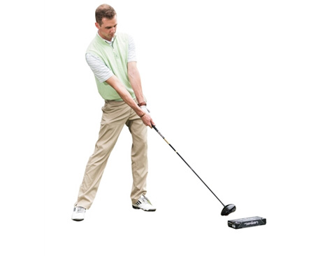 如果你连两个Tee也没有的话,那就在唯一的Tee前方随便摆放一点什么东西吧,比如这个黑色的包装盒,也能起到治愈顽疾的作用,改善你的击球轨迹和击球角度,让球飞得更准更远。
