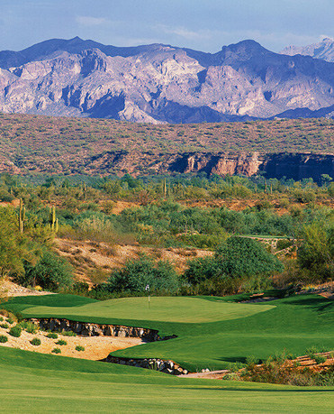 就是在这样瑰丽梦幻到不真实的自然景致里,设计师们打造出了300多家风格各异的球场,有些更是发展了独具风格的高尔夫度假村,许多俱乐部都配套不止一个18洞球场。对于喜欢在强烈的色彩中寻找奔放自由的球友来说,亚利桑那就是一个天堂。请紧跟着,看看亚利桑那不得不打的最热火四射的球场吧。