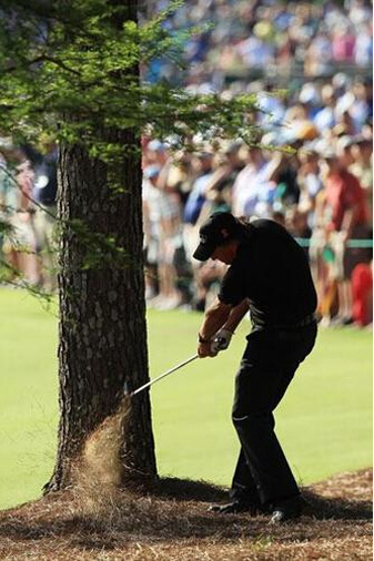 看米克尔森比赛会很激动,有人说他的球时好时坏,而米克尔森自己总会忽视那些看起来应该打得更安全的球,直接进攻。2010年美国大师赛决赛轮,也是13 号洞,是在奥古斯塔的第13洞五杆洞。米克尔森开球开到松树后方的松针上。“当时我必须在两棵树之间击球。我该选择缓攻三上呢,还是两杆直接攻果岭呢?” 米克尔森决定采用6号铁直接进攻并最终将球攻上果岭,两推抓了一只小鸟,这为他夺冠奠定了坚实的基础。